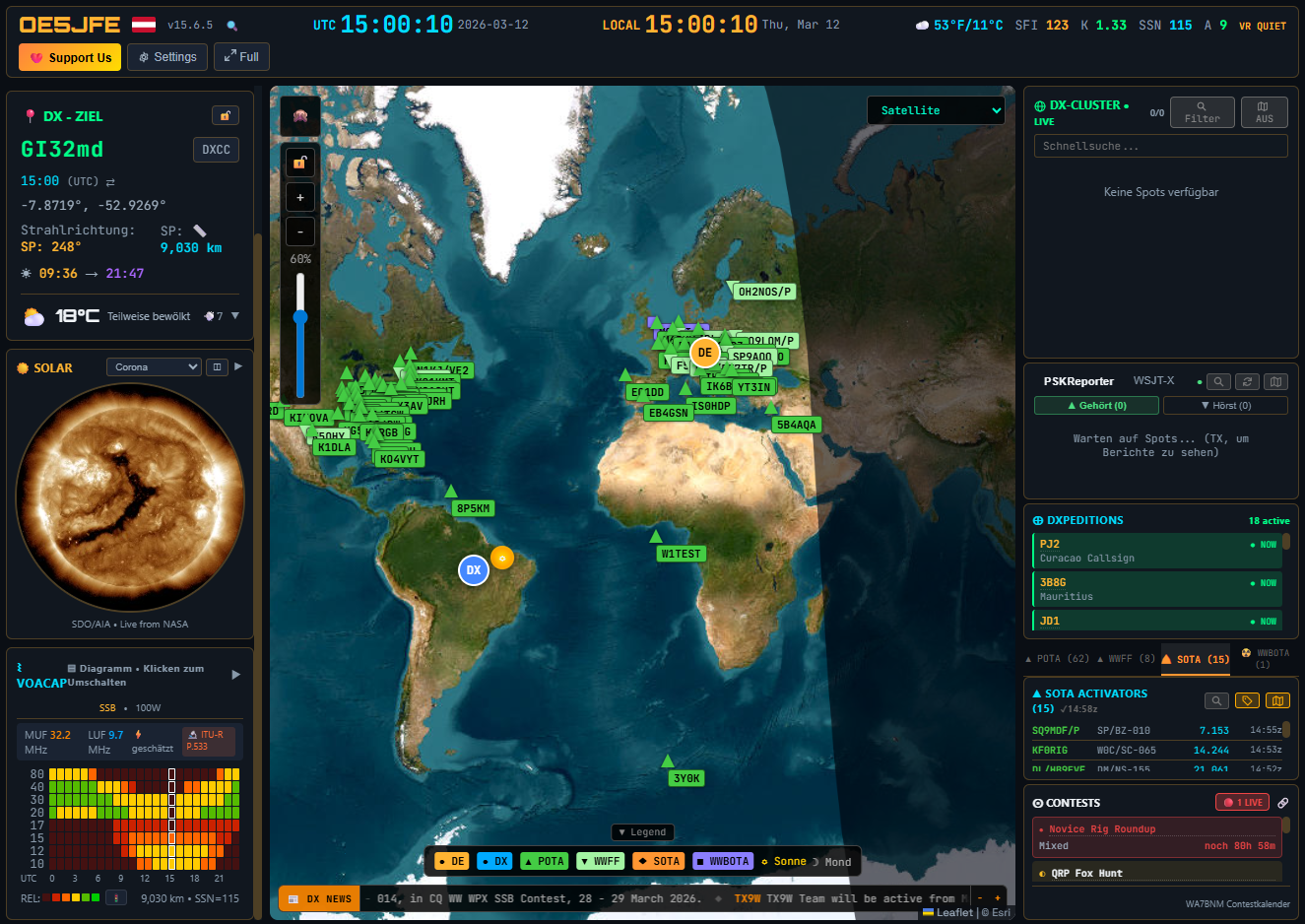 Vielleicht eine schöne Ergänzung um im eigenen Shack oder der Clubstation zu sehen was so im DXCluster oder bei SOTA, POTA, usw. weltweit los ist. Auch eine Liste der aktuellen DXpeditionen ist verfügbar. Die aktuellen solaren Bedienungen und auch die direkte Einbindung des VOACAP Propagation Systems macht es einfach zu sehen welches Band grad die besten DX Vorrausetzungen bietet.