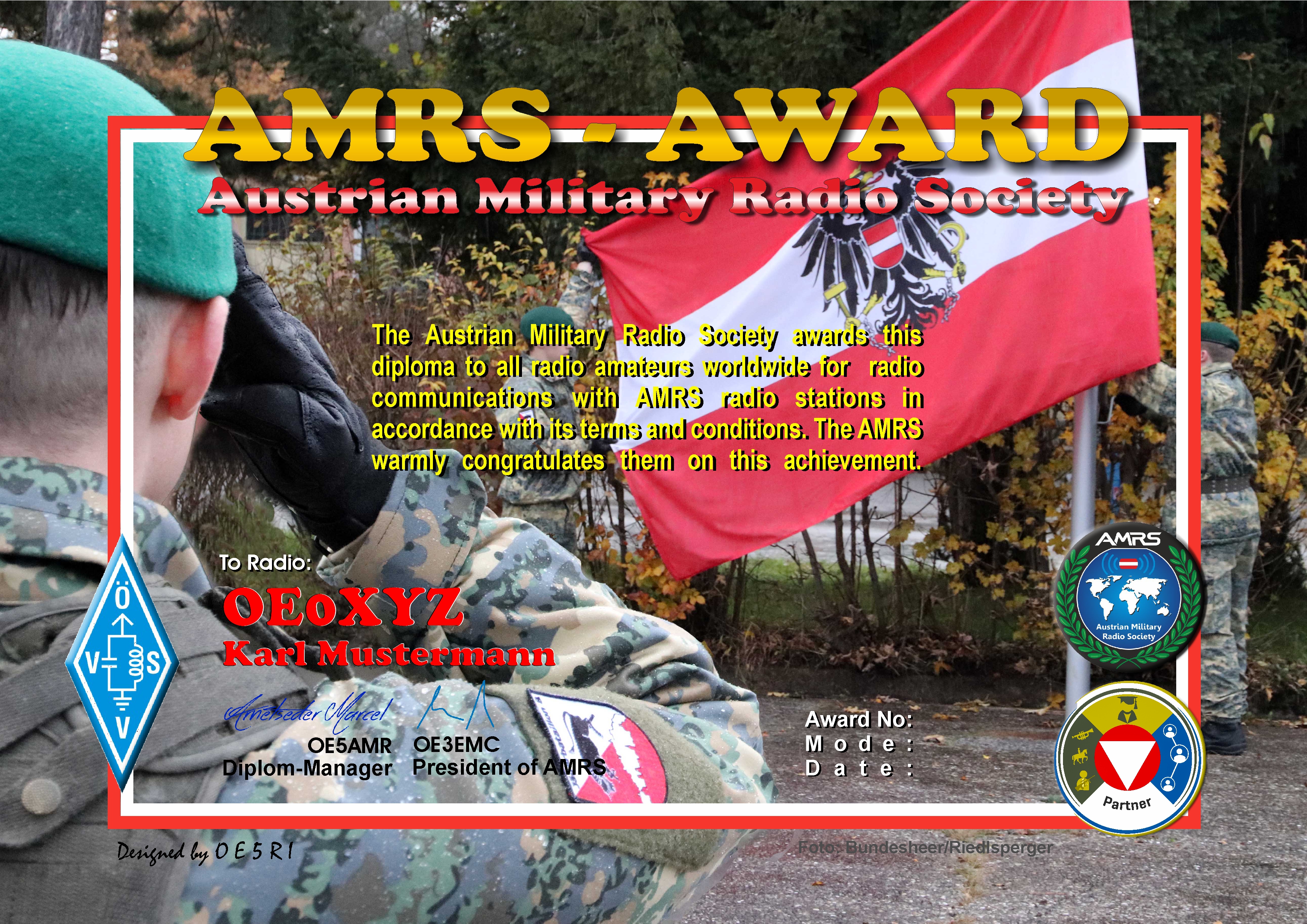 Das AMRS Diplom ist ein offizielles Diplom des ÖVSV, herausgegeben vom Amateurfunkverein des Österreichischen Bundesheeres - AUSTRIAN MILITARY RADIO SOCIETY - AMRS im ÖVSV und kann als eines der schönsten Diplome Österreichs betrachtet werden. Wenn du es arbeiten möchtest, dann lese die Regeln.